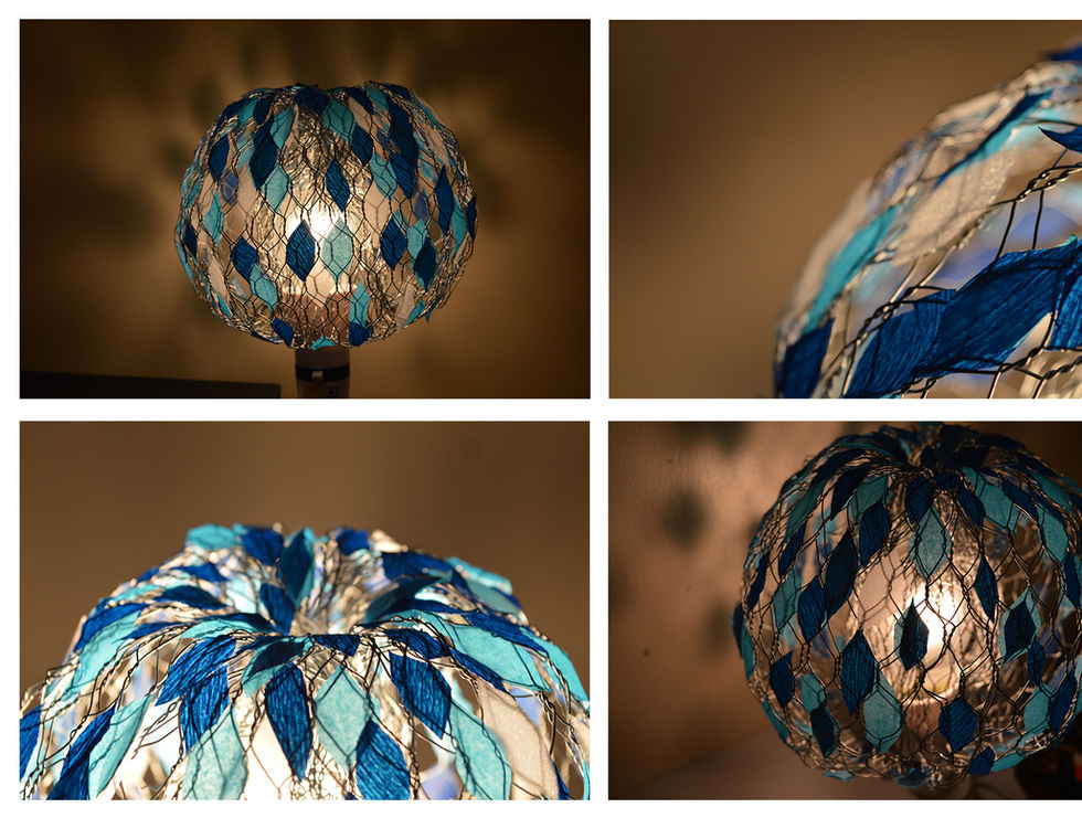 Experimental photography with shadow and light created by materials like chickenwire and coloured paper.